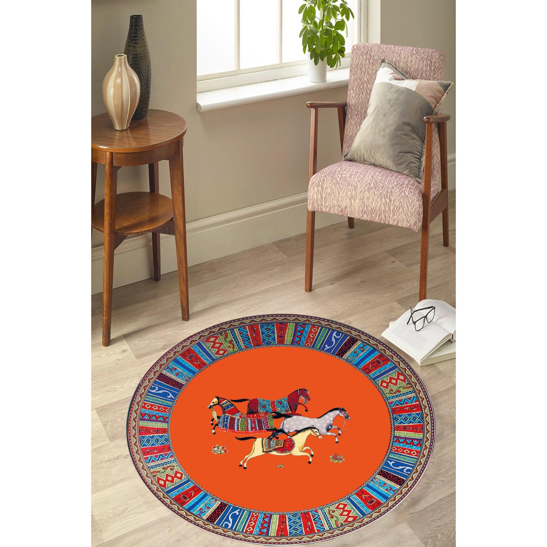 FLQUE Моющийся нескользящий круглый коврик для гостиной и кухни с цифровым принтом и этническим рисунком