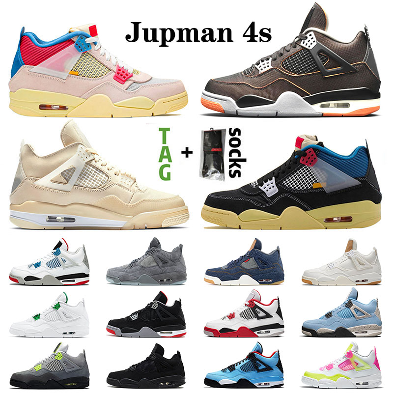 New Original Jumpman 4s Baseketball Shoes 4 Mens Womens Union Sail off Fire Red Cactus Jack Black Cat What the Denim Men Sneakers, B29 40-47 black