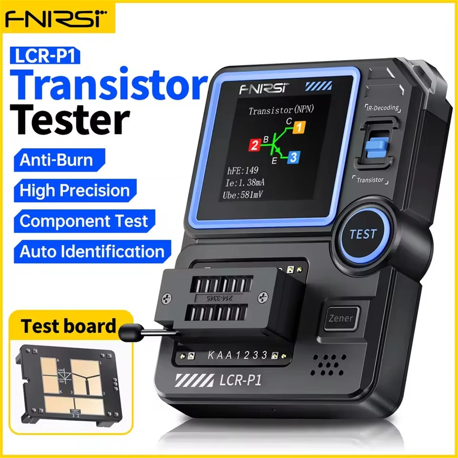 FNIRSI LCR-P1 Mini Transistor Tester Diode Triode Capacitance Resistance Meter ESR Meter NPN PNP MOSFET IR Multifunction Tester