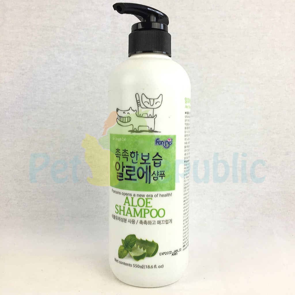 Forbis Aloe Shampoo 550mlFeatures:Natural aloe, allantoin and panthenol leave hair glossy and elastic by providing delicate or dry skin/hair with moisture and nourishment. Being soft and mild, this product protects both dogs, cats and used from an impetus during bathing.Ingredients:Cocamidopropyl betaine, sodium PEG-7, olive oil carboxylate, glycerin, Bis (C13-C15 alkoxy) PG- amodimethicone, tocopheryl acetate, allantoin, aloe vera gel, DL-panthenol.Size:550 mlUsage Guidelines:Before stating shampoo, loosen the tangled hair and then wet the hair with lukewarm water thoroughly, and apply adequate amount of the shampoo. Once you have shampooed the hair, rinse if with warm water thoroughly, and if you don't wash it sufficiently it may cause a skin disease.
