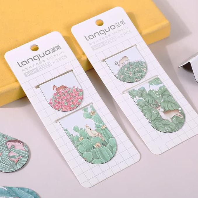 Berisi 2 pembatas buku magnet dengan ukuran 3.5 x 3.5 cm dan 3.5 x 5.8 cm. (ukuran terlipat)