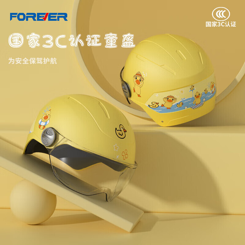 FOREVER (FOREVER) Детский шлем с милым рисунком, летняя непромокаемая мужская и женская легкая защитная шапка для мопеда с полупокрытием, желтая