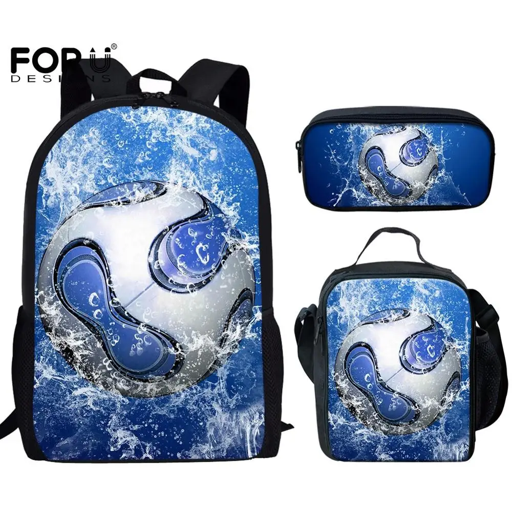 FORUDESIGNS, школьная сумка для мальчиков, дизайнерские Синие Школьные сумки с 3D принтом, 3 шт., спортивная серия для здоровья, водонепроницаемая ф...