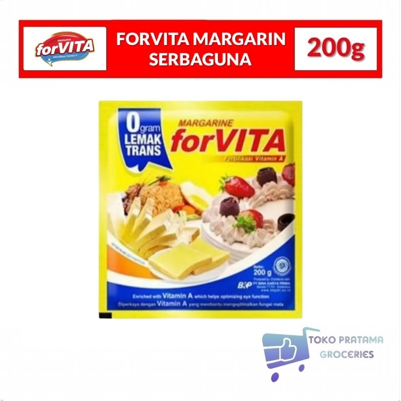 Forvita Margarin Serbaguna adalah margarin yang bebas lemak trans dan mengandung vitamin A. Margarin ini dapat digunakan untuk berbagai macam masakan, seperti menumis, memanggang, dan membuat kue.