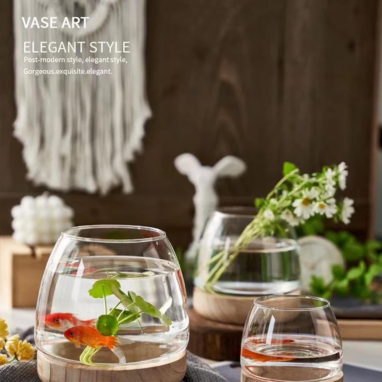 FQQWEE Стеклянная ваза с деревянной подставкой Прозрачный гидропонный аквариум для рыбок Ваза-колба для цветов Креативная стеклянная ваза для водных растений Гидропонный плантатор