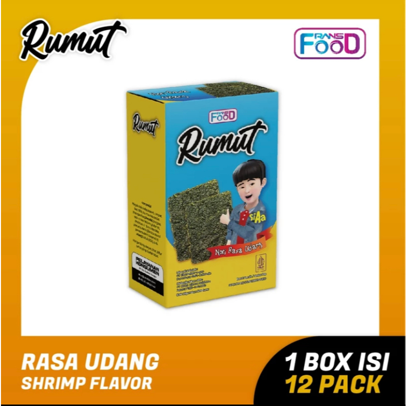 Rumut adalah camilan rumput laut premium yang terbuat dari rumput laut berkualitas tinggi yang diproduksi dengan suhu terbaik dalam prosesnya untuk menghasilkan tingkat kerenyahan optimal. Perpaduan bumbu dengan cita rasa khas yang menjaga Rumut sebagai camilan lezat dan bergizi dalam ukuran yang lebih besar.Komposisi