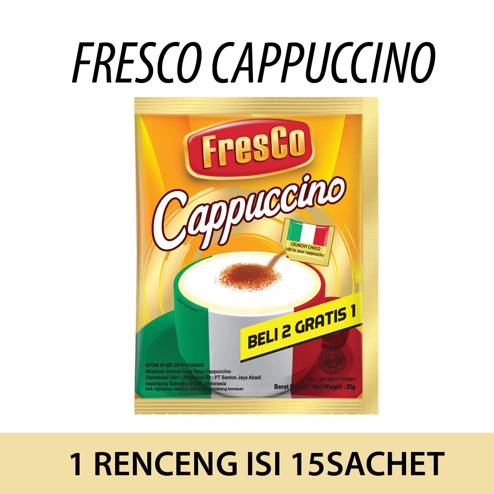 Ngopi yuk! Dengan paduan strong coffee, smooth foam, creamy milk dan crunchy choco granule menghasilkan Fresco Cappuccino yang perfecto