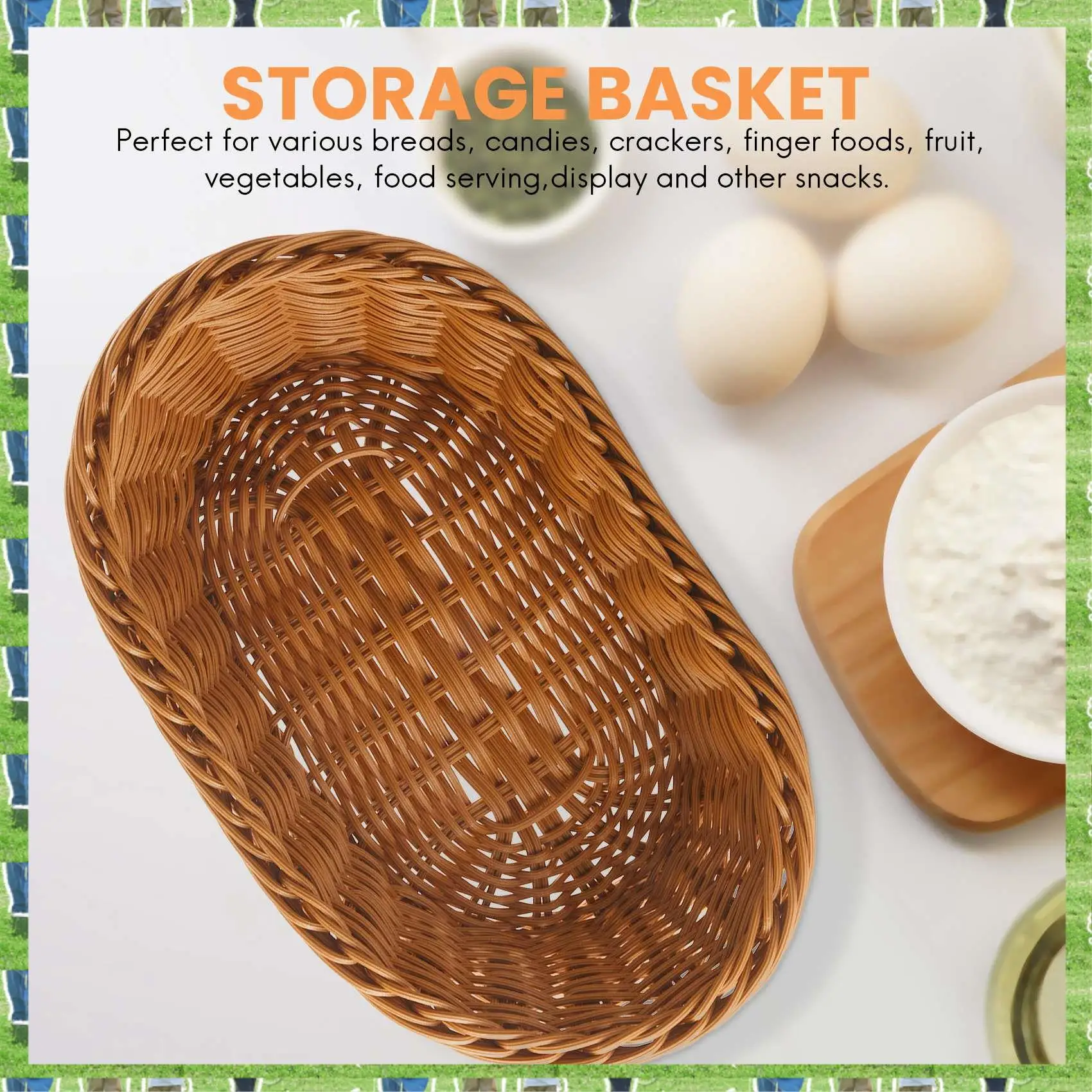FTS Овальная плетеная корзина Корзина для хлеба Сервировочная корзина, 11-дюймовая корзина для хранения продуктов питания, фруктов, косметики Столешница и B