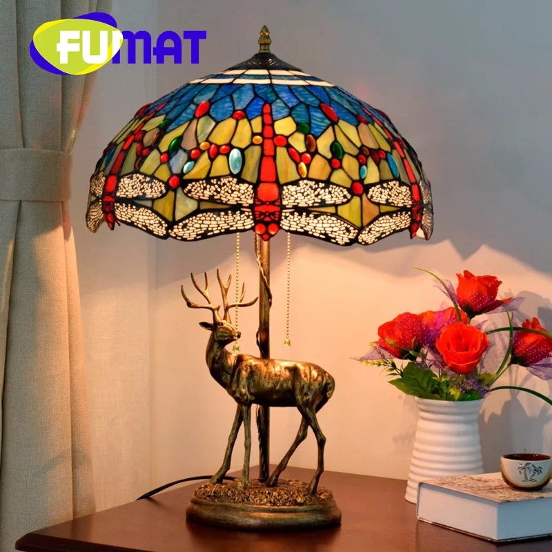 FUMAT витражная настольная лампа Тиффани Лось синяя Стрекоза Арт-Деко Гостиная Столовая бар Спальня прикроватная офисная лампа