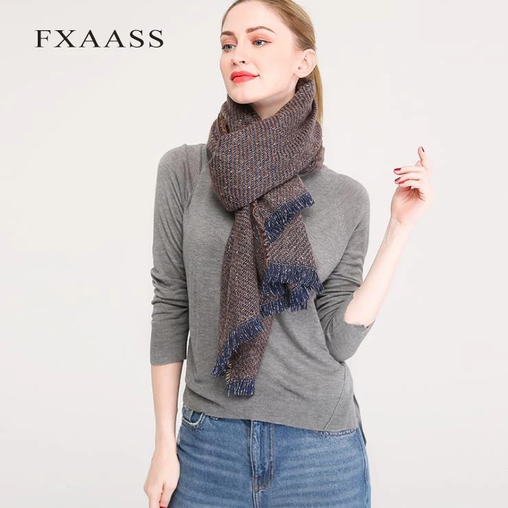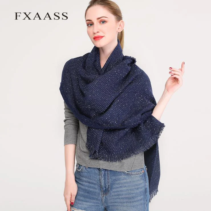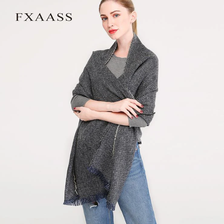 FXAASS новая осенне-зимняя шерстяная шаль, Модный женский большой шарф, роскошные кашемировые шарфы с кисточками, парные однотонные пашмины, о...