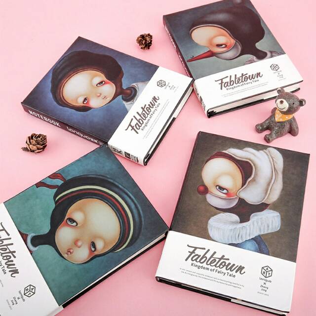 Buku tulis yang memiliki gambar ilustrasi seorang gadis. Memiliki warna yang cenderung gelap. Didalamny memiliki 3 jenis kertas di dalamnya, kertas putih polos, kertas bergaris, dan kertas kotak-kotak.