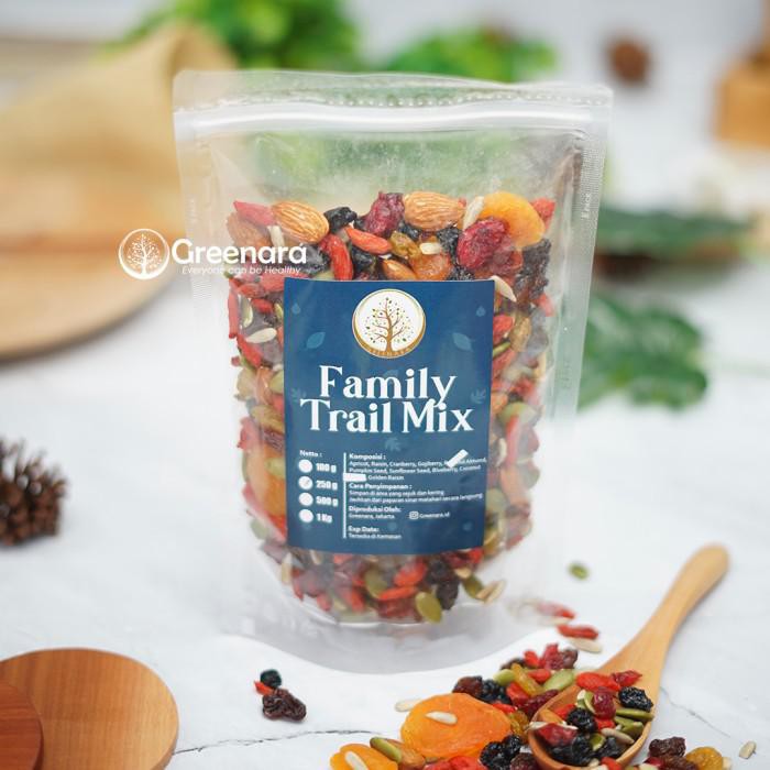 Family Trail Mix adalah snack sehat dari kombinasi buah - buahan kering dan kacang - kacangan.