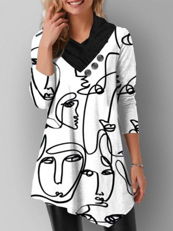 Fashion Abstract Printed Button T-shirt