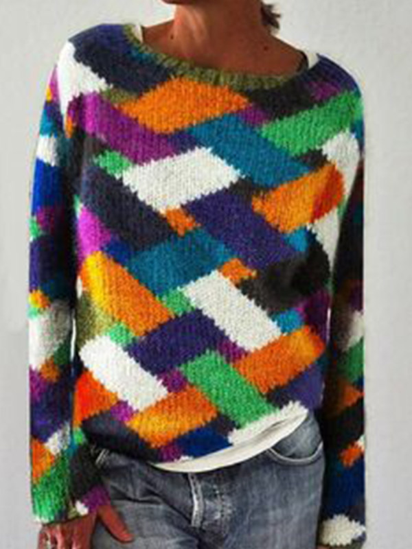 Fashion Color Print Crew Neck Sweater
