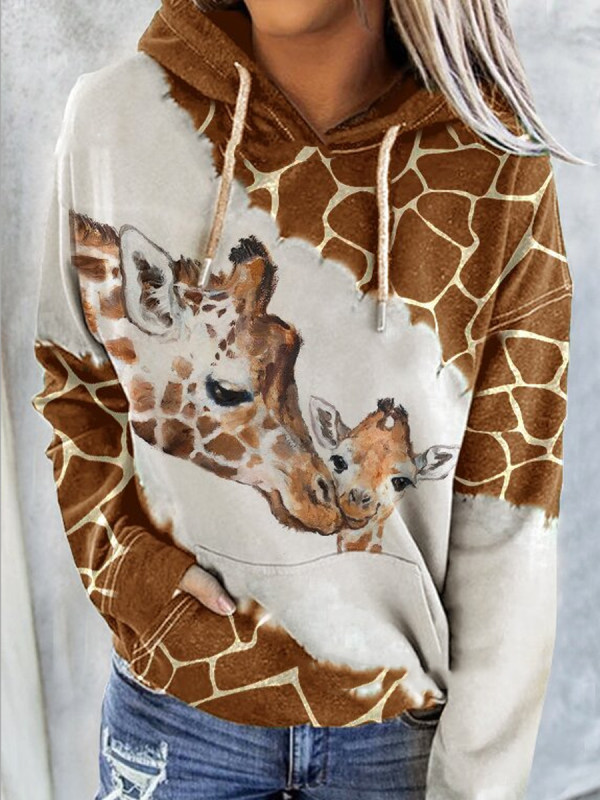 Fashion Hooded Giraffe Positioning Printed Sweater