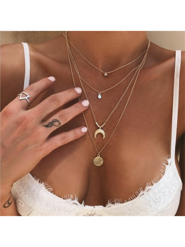 Fashion Personality Multi-Layer Moon Round Pendant Necklace