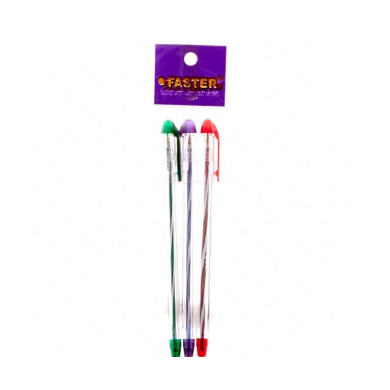 Faster Ballpoint Hitam 3 pcs adalah pulpen mempunyai kualitas yang baik sehingga aktivitas menulis menjadi menyenangkan. Pulpen ini dapat menjadi pilihan dalam menulis atau mencatat. Bolpoin ini dipaketkan dalam satu paket berisi tiga bolpoin berwarna hitam. Sangat memudahkan ketika mengalami kehilangan pulpen atau kehabisan tinta sehingga kebutuhan akan pulpen tetap terjamin. Tersedia dalam kemasan pack isi 3 pcs.