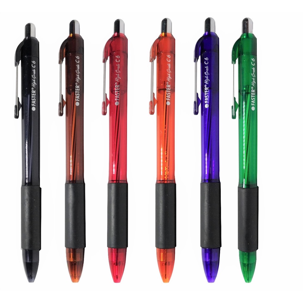 Faster High Grade C6 merupakan pulpen clip yang dapat digunakan sehari-hari. Pulpen model clip yang tidak memerlukan tutup sehingga tidak perlu khawatir kehilangan tutup, clip yang berbahan stainless steel membuat pulpen tahan lama. Ujung pena yang sangat halus memberi kenyaman dalam menulis. Isi enam warna casing yang berbeda membuat anda dapat menyesuaikan dengan warna favorit.