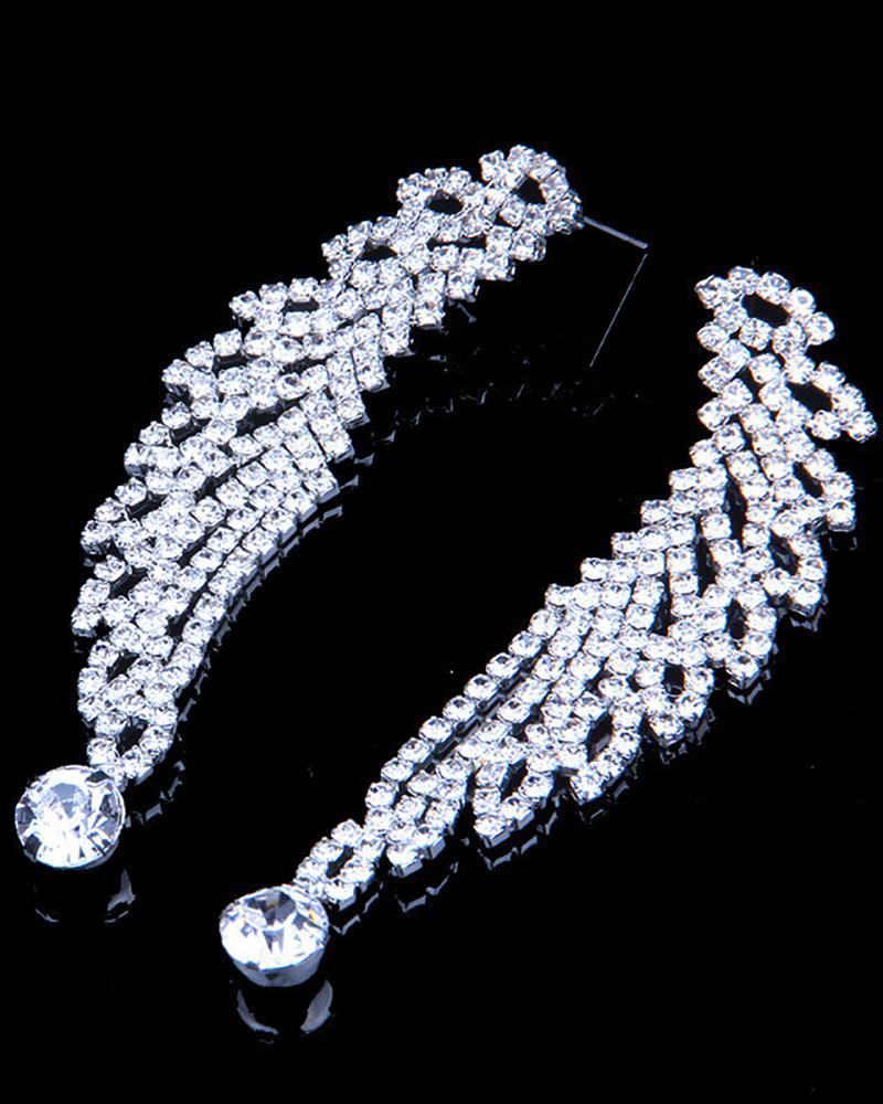 Feather Pattern Shaped Rhinestone Drop Earrings, Silver