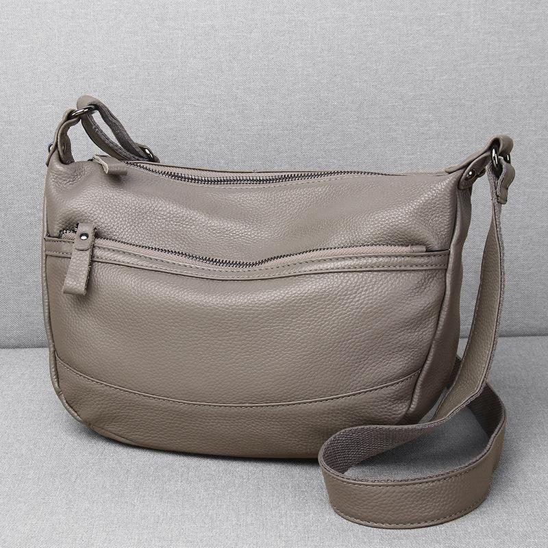 Feiya кожаная женская сумка первый слой коровьей кожи повседневная мягкая кожаная сумка для мам среднего возраста сумка через плечо сумка в форме полумесяца светло-серый
