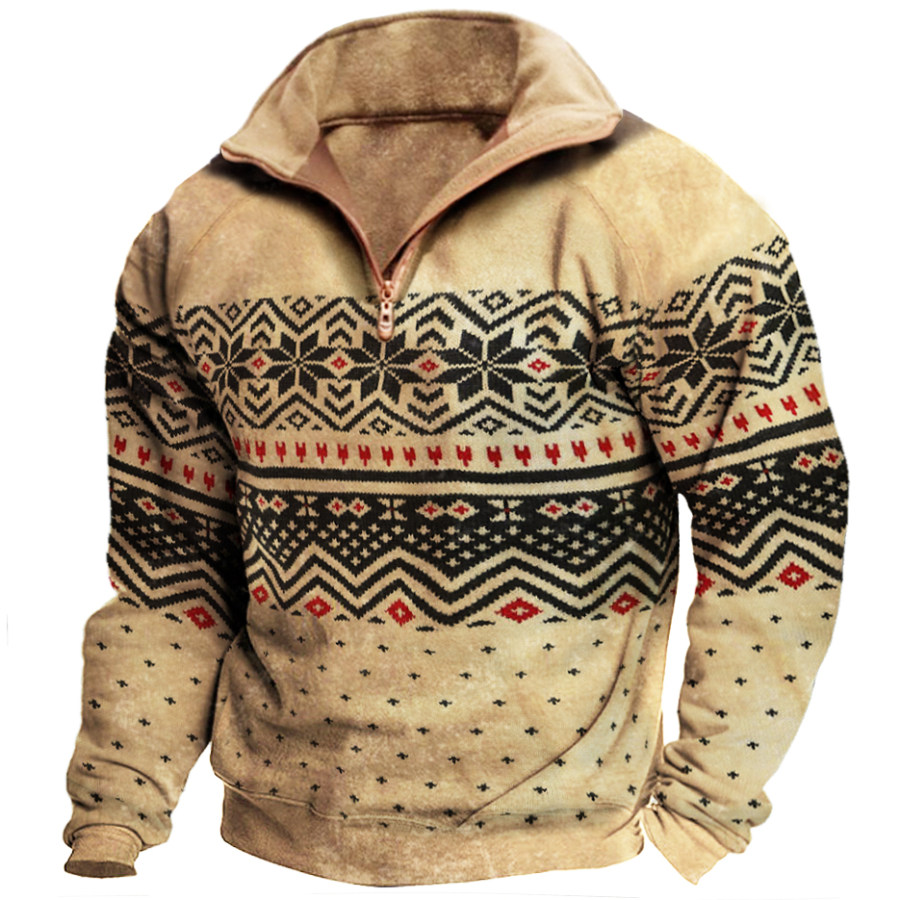 Felpa Da Uomo Con Risvolto Con Cerniera Geometrica A Contrasto