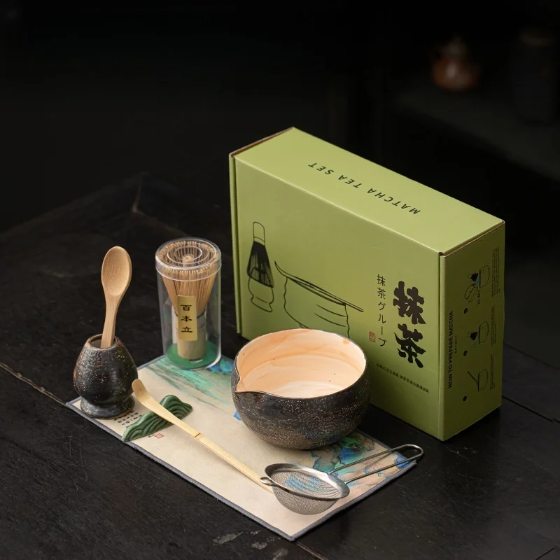 Fenyin Matcha Tool, набор из 8 шт., керамическая чаша Matcha, фильтр для чая, весло, держатель для чайной щетки, точка смешивания пенопласта, чайник, аксессуары Matcha