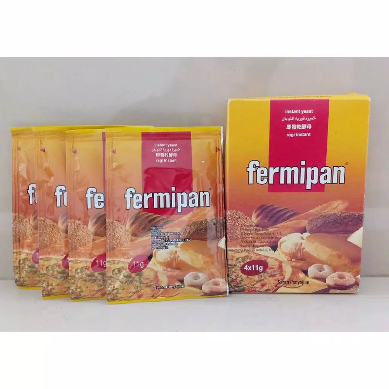 Fermipan / Ragi Instan sachet 11 gr adalah pengembang roti, bakpau, donat, dll.