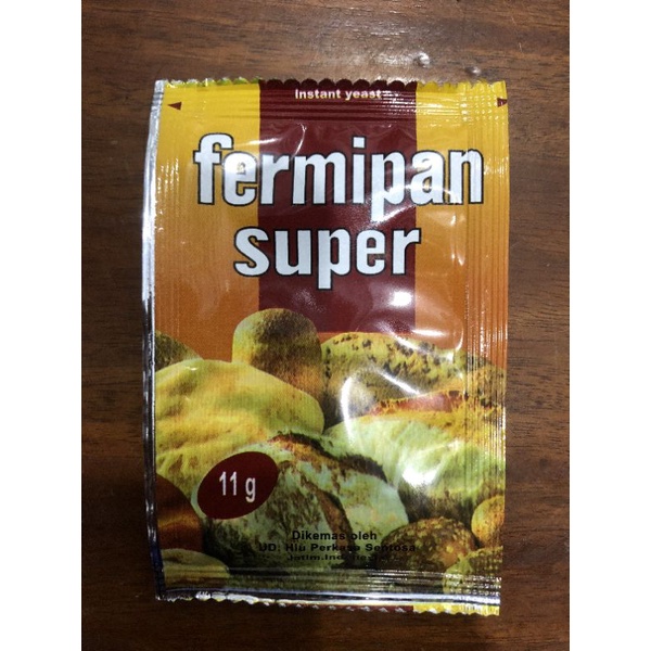 Fermipan Ragi Cokelat [11 g] merupakan bahan utama yang berfungsi untuk mengembangkan roti dan mengembangkan adonan dengan menghasilkan gas CO2, dapat memperlunak gluten dengan asam yang dihasilkan, serta memberi rasa dan aroma dari hasil pelunakan gluten. Fermipan coklat lebih cocok digunakan untuk kandungan kadar gula rendah (maksimal 3%).