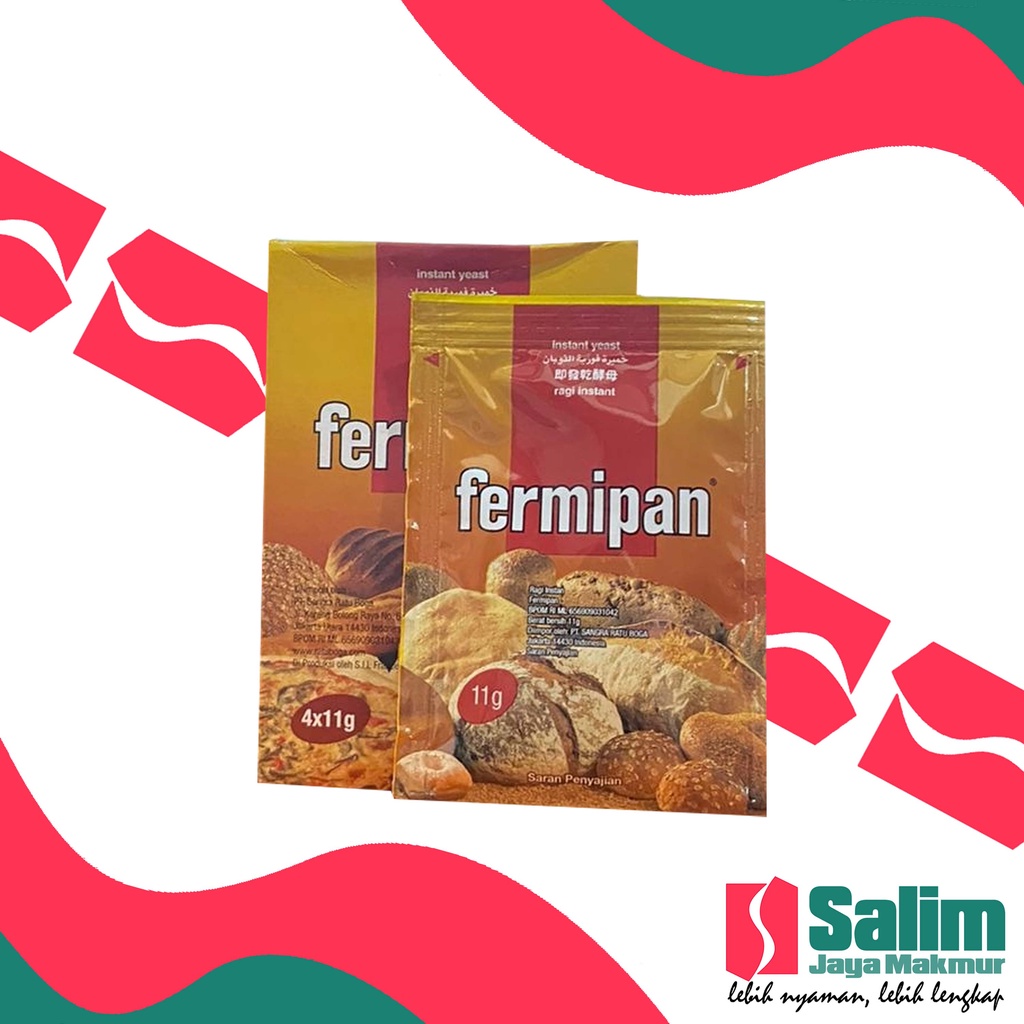 Fermipan adalah ragi instan pilihan yang membantu proses fermentasi adonan roti menjadi lebih cepat dan optimal. Dengan kemasan sachet 11 gram, produk ini praktis untuk digunakan dalam resep roti rumahan maupun usaha bakery kecil.