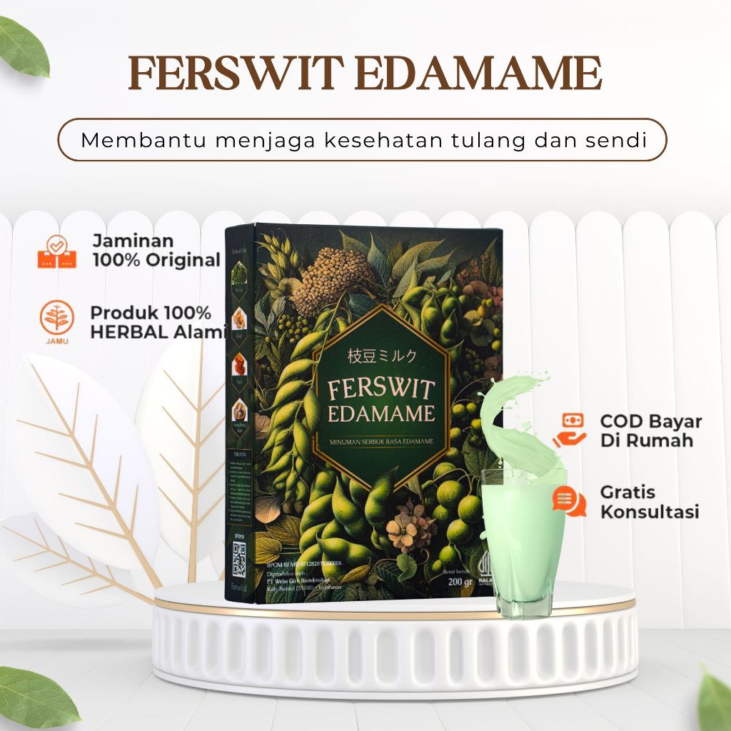 Ferswit Edamame adalah susu nabati berbasis edamame premium Jepang, diperkaya dengan bahan alami seperti moringa, jahe, royal jelly, dan sarang wallet. Formulasinya dirancang untuk membantu mendukung kesehatan tulang, sendi, dan tubuh secara menyeluruh. Aman dikonsumsi jangka panjang tanpa efek samping atau ketergantungan.