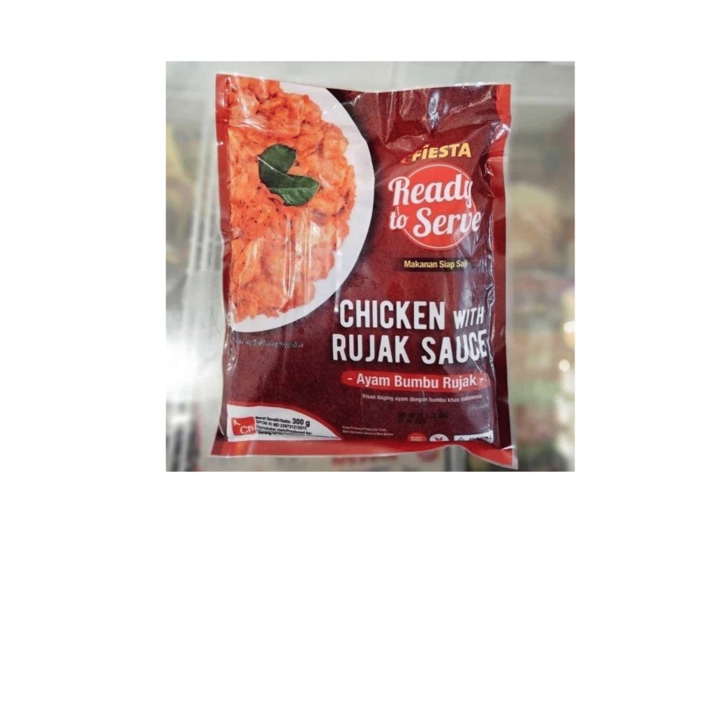 Fiesta Rice with Chicken Rujak adalah hidangan siap saji yang menggabungkan nasi putih pulen dengan ayam berbumbu rujak khas Indonesia, yang memiliki rasa gurih, manis, dan pedas. Dengan kemasan 320 gram, produk ini praktis dan cocok untuk makan siang atau malam yang lezat.
