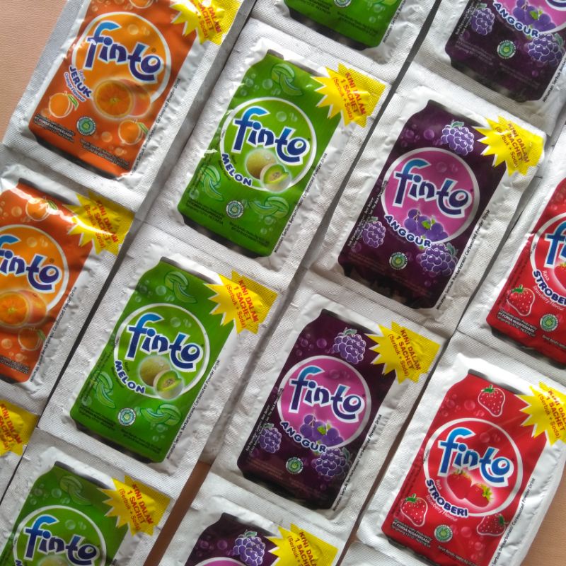 Finto minuman serbuk aneka rasa 1 renceng=10 sachets. Tersedia berbagai varian rasa: