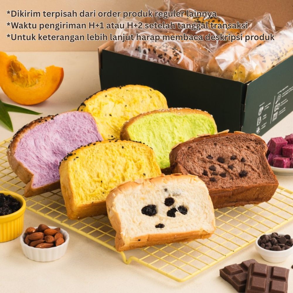 Dalam paket ini, sayurfriends akan mendapatkan 6 pcs jenis Roti Vegan dalam 1 box cantik berbahan hard box.