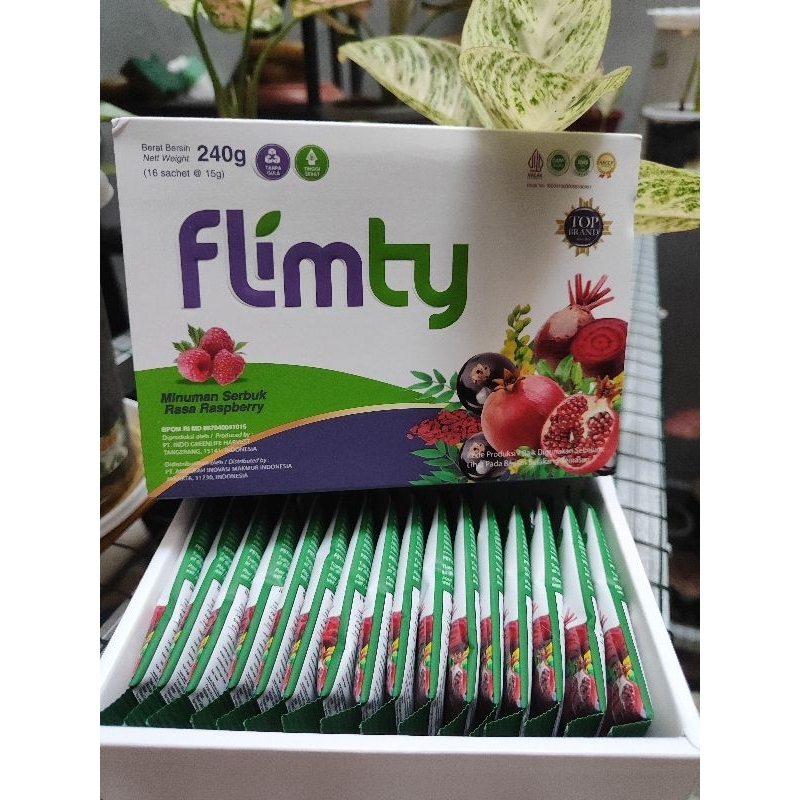 Flimty adalah Minuman segar kaya serat bernutrisi tinggi yg membantu membersihkan saluran pencernaan, dengan cara mengikat minyak, tepung, lemak pada makanan , dan membantu membuang zat toxin pada makanan melalui BAB. Membantu menurunkan berat badan (pendamping program diet). Membantu merampingkan perut.