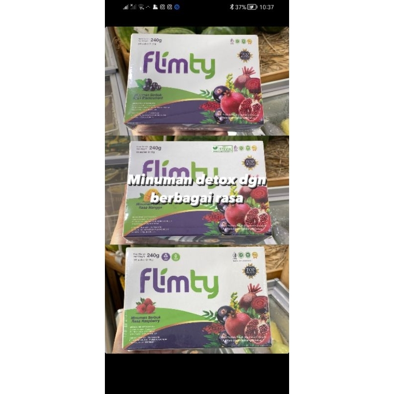 Flimty isi per box 16 sachet tersedia rasa mangga, blackcurrant,dan raspberry. With stevia (pemanis alama 0 kalori). Mohon mencantumkan rasa saat memesan di note, jika tidak kami kirim rasa random yaa.. terimakasih