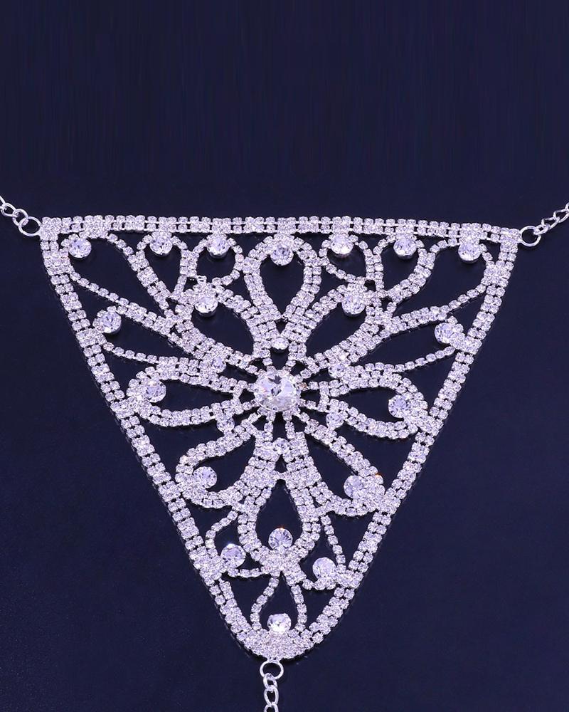 Floral Pattern Cutout Rhinestone Decor Body Chain, Silver