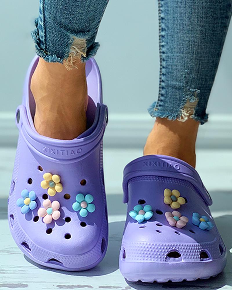 Floral Pattern Flatform Vented Clogs, Purple