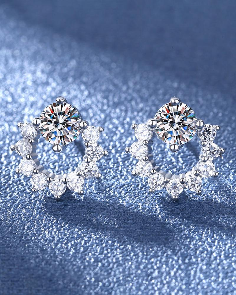 Flower Pattern Rhinestone Stud Earrings, Silver