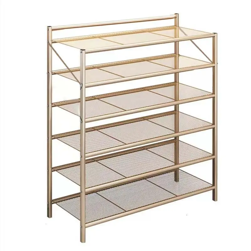 Foldable Metal Multi-Layer Shoe Rack Dustproof Entry Shoe Cabinet with Simple Design Unfolded Iron Storage Rack