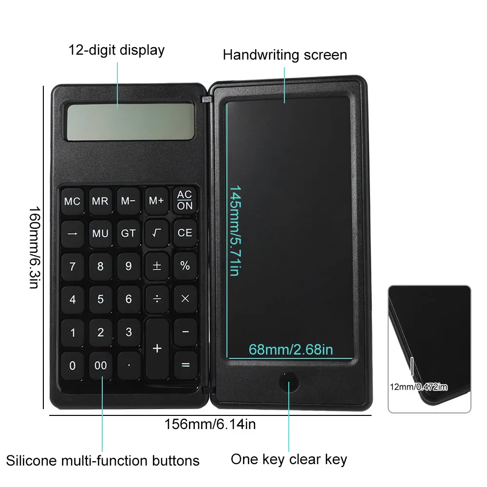 Foldable Scientific Calculator 12 Digits Erasable Digital Writing Tablet Multifunctional Portable LCD Writing Board with Stylus
