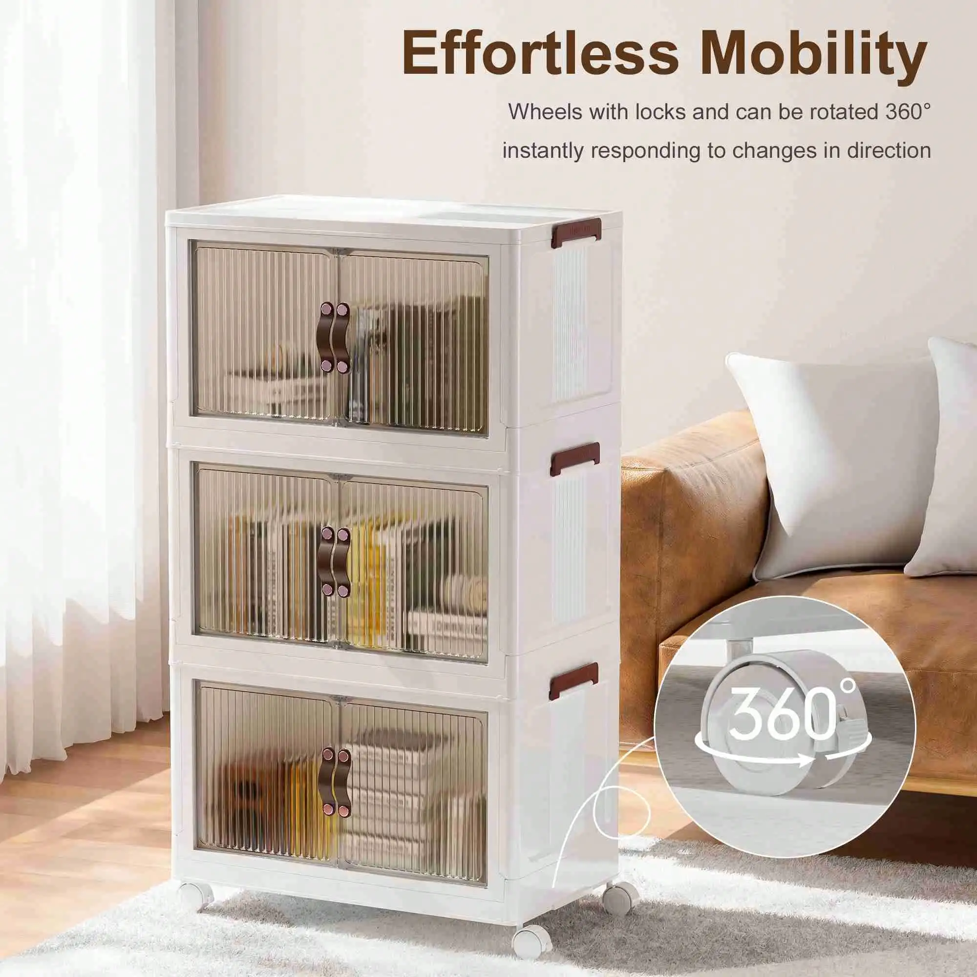 Foldable Storage Boxes 2 Tiers Multifunctional Stable Stackable Storage Containers for Bedroom