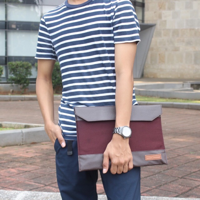 "Multi-function folder bag uses semi-leather and premium canvas as their main materials. It can be used as your documents or notes bag, and also as a laptop cover.