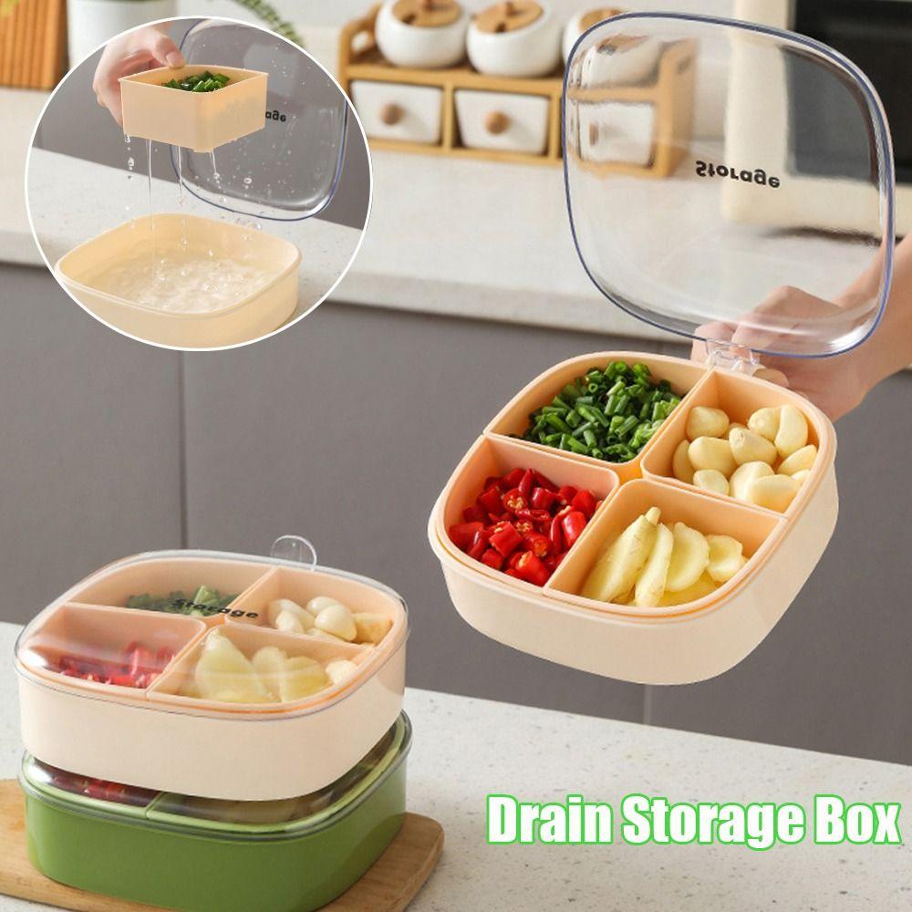 Fooding Sorting Fridge Food Storage Crisper 4 Grid Sealed Sub-Packed Box Frozen Storage Box бежевий