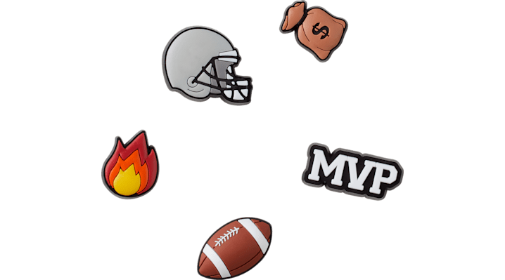 Pop some personality into your shoes with the Football Star 5 Pack of Jibbitz™ charms. It's the perfect addition to your favorite clogs, slides, sandals, bags, and more.Not a toy. Not intended for children under 3 years of age.