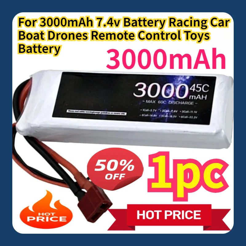 For 3000mAh 7.4v Battery Racing Car Boat Drones Remote Control Toys Battery