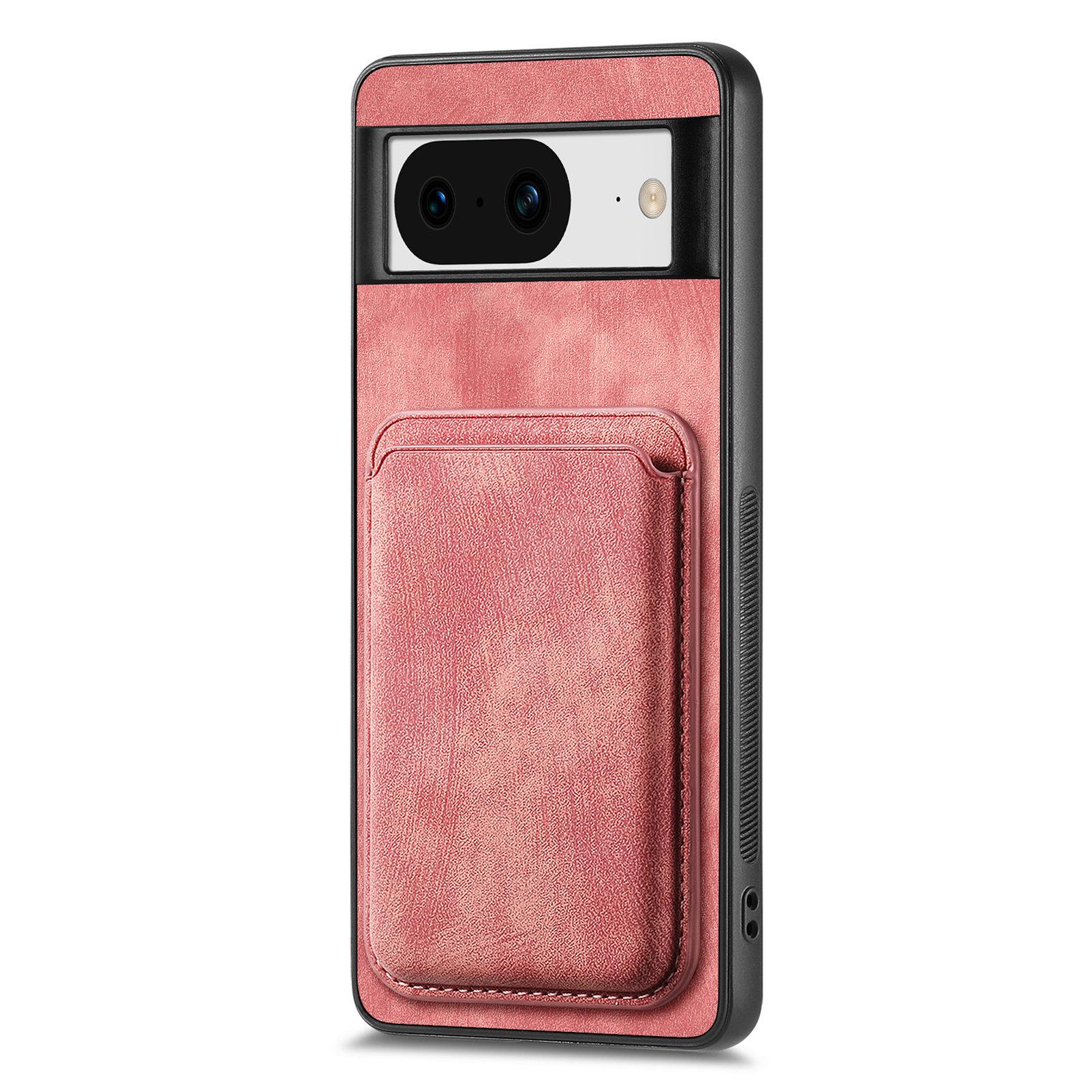 For Google Pixel 8 Anti-Scratch Case Compatible with MagSafe Leather Back Cover with Detachable Card Holder Pink