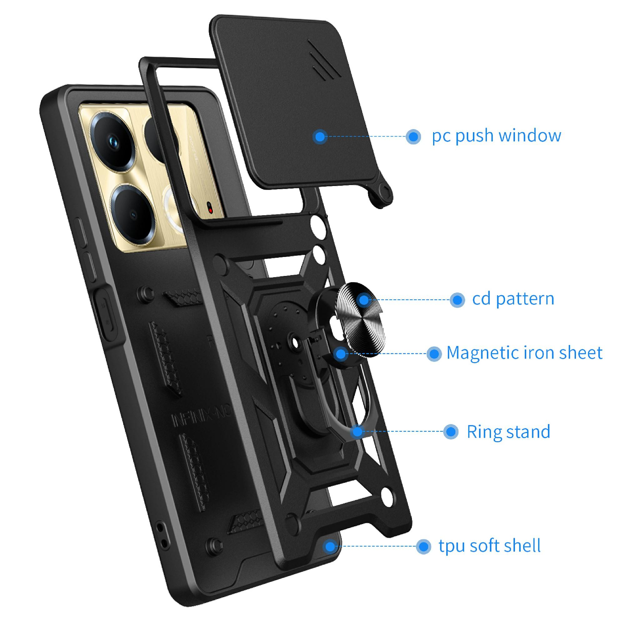 For Infinix Note 40 Cell Phone Case Slide Lens Guard Dust-Proof PC+TPU Phone Shell Red