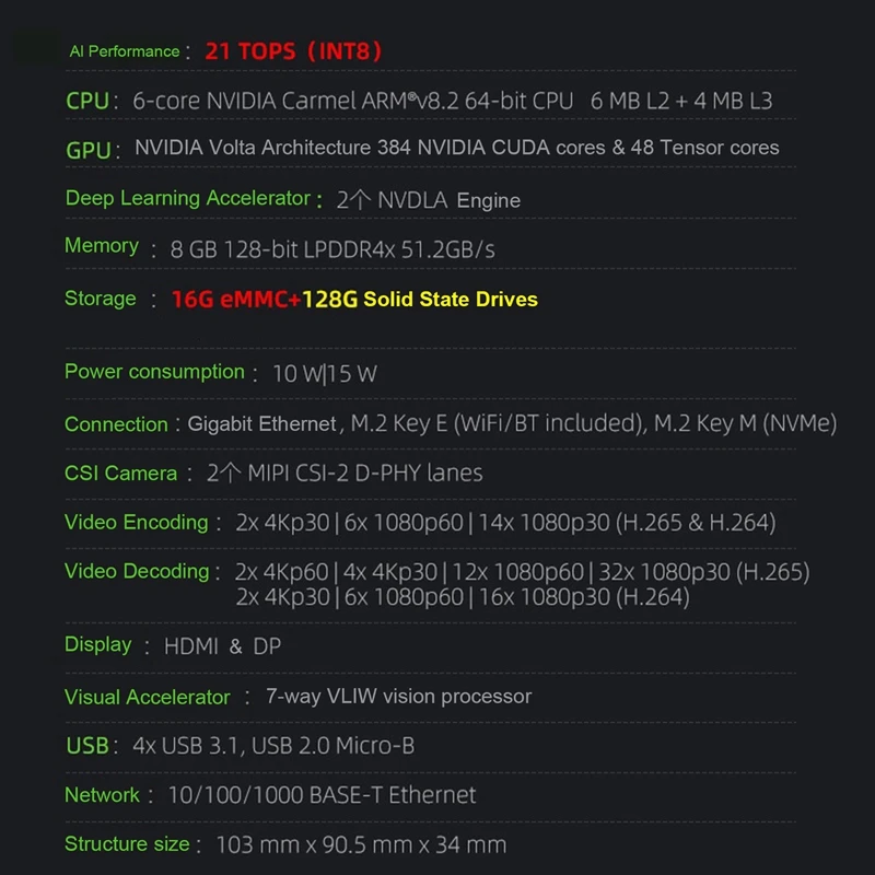 For Jetson Xavier NX Developer Board Kit 8GB EMMC Version With Core Module Artificial Intelligence Python Programming