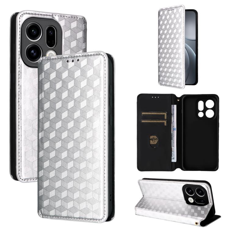 For OPPO Find X9 Cubic Grid Texture Flip Leather Phone Case(Silver)