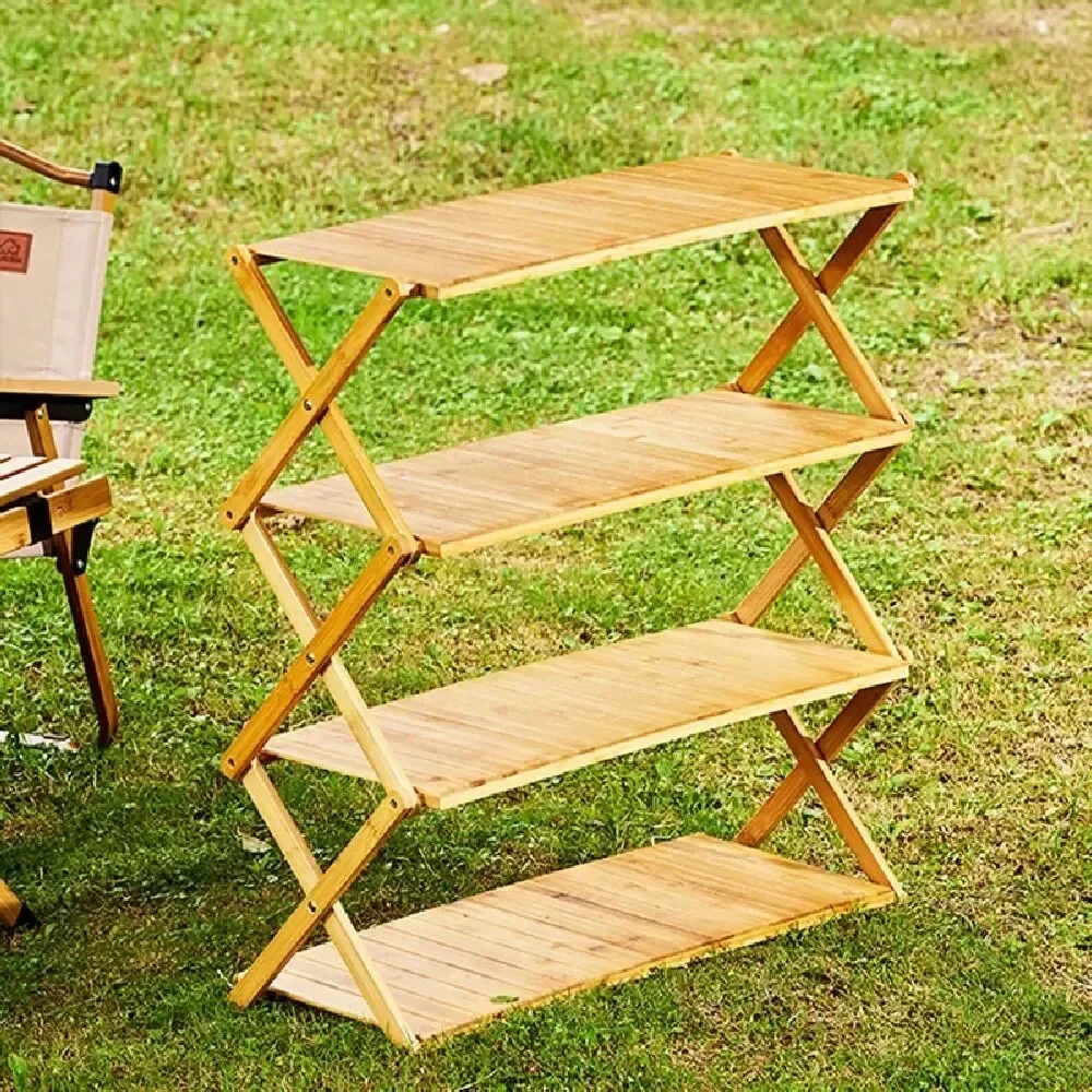 #For Outdoor Camping Portable Storage Rack Picnic Multi-layer Bamboo Folding Racks Living Room Portable Table Flower Rack Shoe R